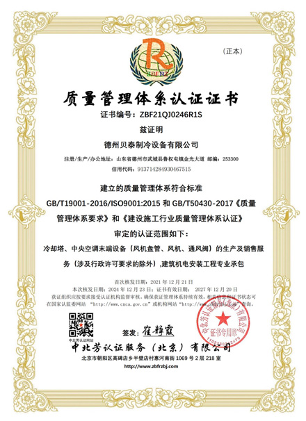 貝泰制冷 —— 專門致力于冷卻塔、中央空調、空調末端配套產品、和玻璃鋼制品的研發(fā)、制造、銷售和服務于一體的現代化企業(yè)